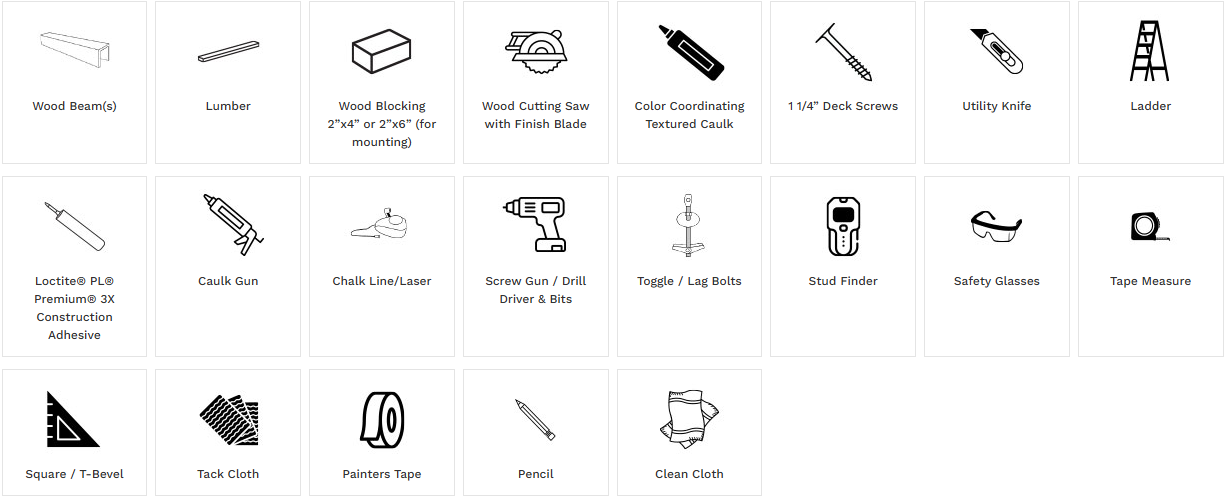 Installing faux beams on a vaulted ceiling is far easier than opting for solid wood beams. If you aren’t an expert carpenter, don’t worry about it! The tools needed for installation are simple, and you may already have most of them at home.